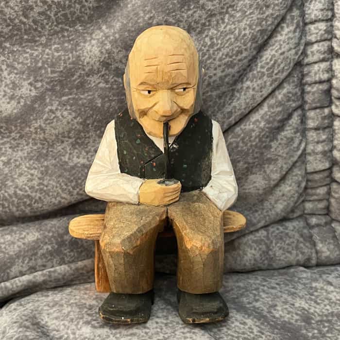 Swedish handcarved MAN smoking his pipe signed Lorens Larsson